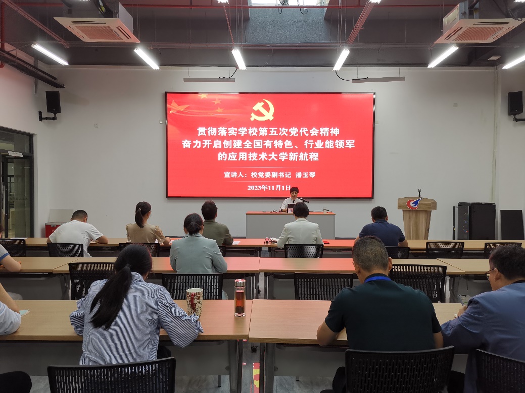 为深入学习宣传贯彻学校第五次党代会精神,切实将广大党员和师生员工的思想和行动统一到党代会精神上来,更加奋发有为推动学院各项事业高质量发展,2023年11月1日下午,304永利全体教职工在现代建筑技术馆313开展集中学习,公司党委副书记潘玉琴作题为“贯彻落实学校第五次党代会精神,奋力开启创建全国有特色、行业能领军的应用技术大学新航程”的主题宣讲。