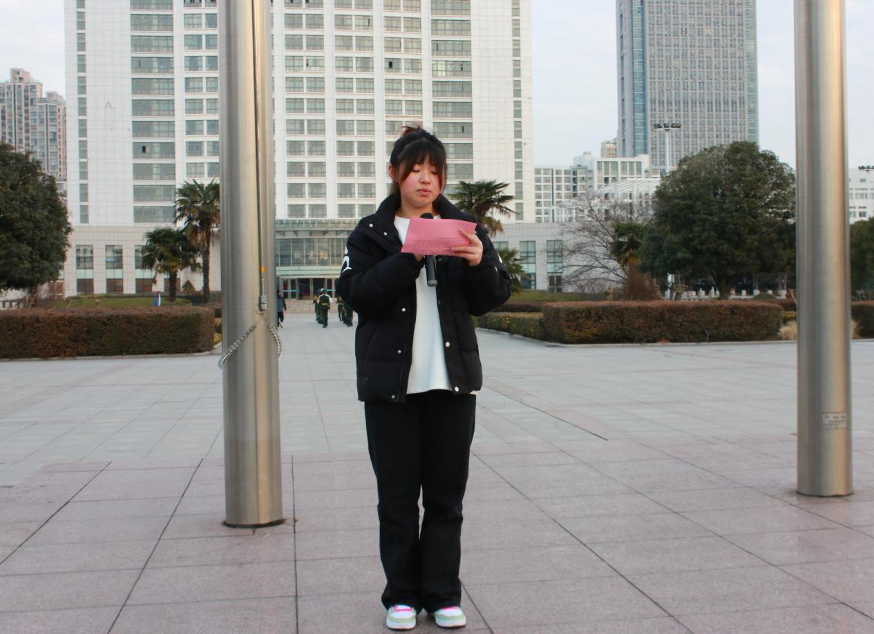 员工代表建工2213班王欣同学作国旗下发言。作为新时代的青年,她表示身上肩负着更多的责任和使命,不仅要在学业上有所成就,在道德品质上更要有所突破,内化于心,外化于行。