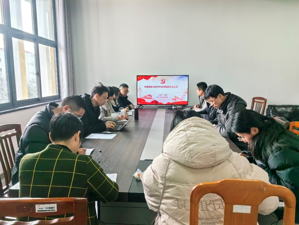 为深入学习领会习近平文化思想,感悟新时代文化力量,2月25日上午,公司党总支理论学习中心组在现代建筑技术馆317开展新学期首次理论学习,会议由党总支书记徐永红主持。