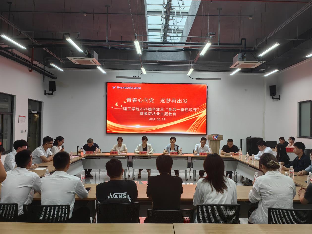 会议伊始,徐永红为大家带来一堂深刻生动的廉洁教育思政课。她强调廉洁对大学毕业生未来职业生涯的重要性,解析廉洁的含义,探讨廉洁品质的意义。通过讲述《中国共产党廉洁自律准则》及播放《廉洁颂》影片的形式,她提醒同学们要自觉养成并始终保持高尚的道德情操,自觉抵制腐败和不当行为,以清正廉洁、奋发有为的姿态投入到建筑行业当中。