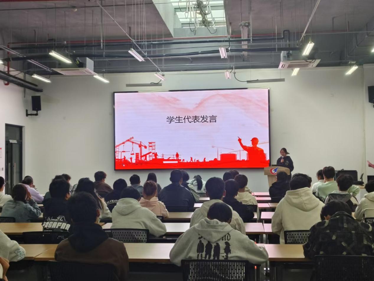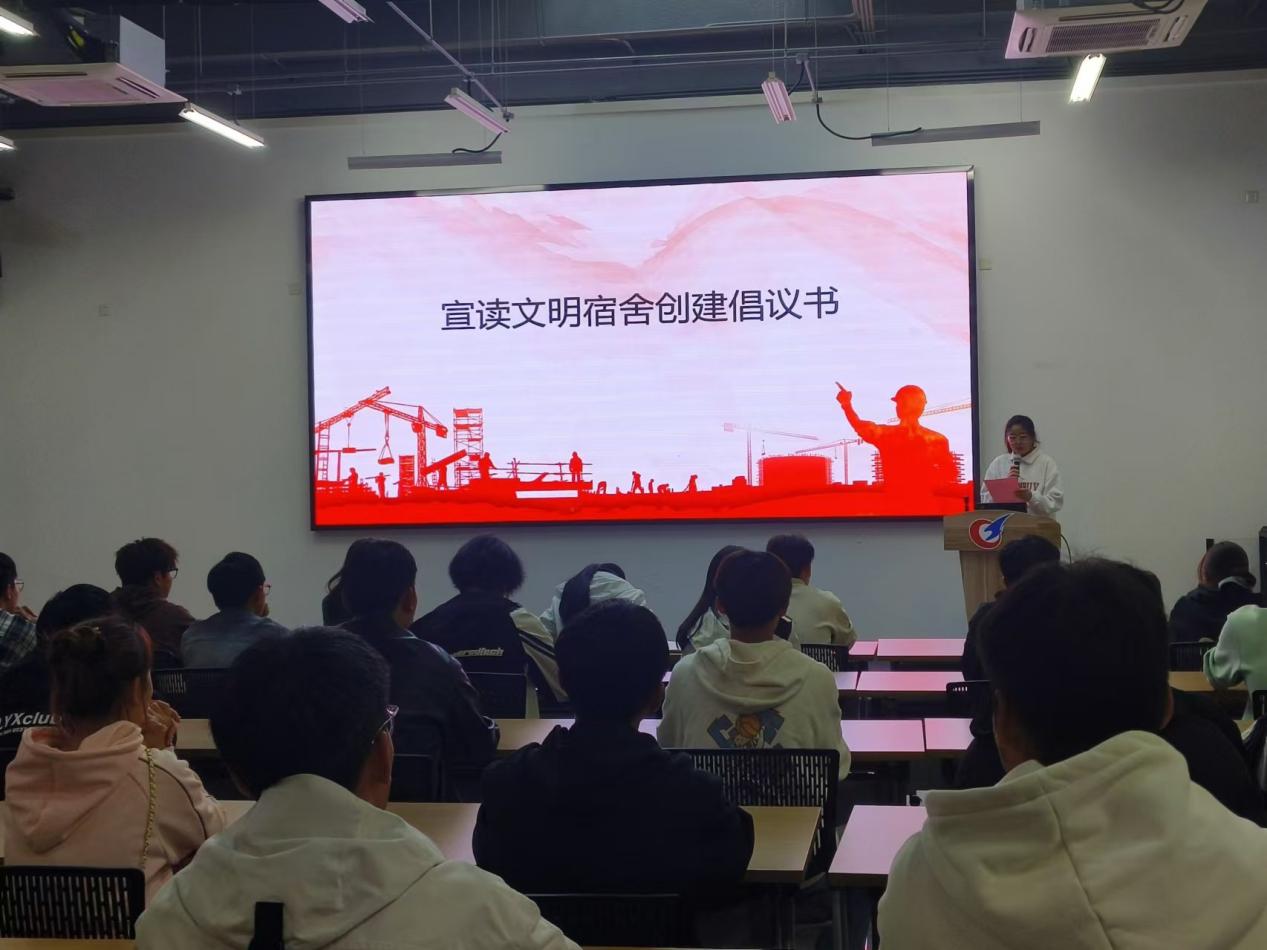 仪式伊始,造价 2311 班钱有丽同学宣读文明宿舍创建倡议书。她呼吁同学们要高度重视宿舍环境,保持宿舍整洁干净,不仅要养成良好的个人卫生习惯,更要严格遵守宿舍规章制度,齐心协力共建安全、整洁、文明的宿舍,让宿舍成为大家温馨舒适的港湾,成为校园文明的重要展示窗口。