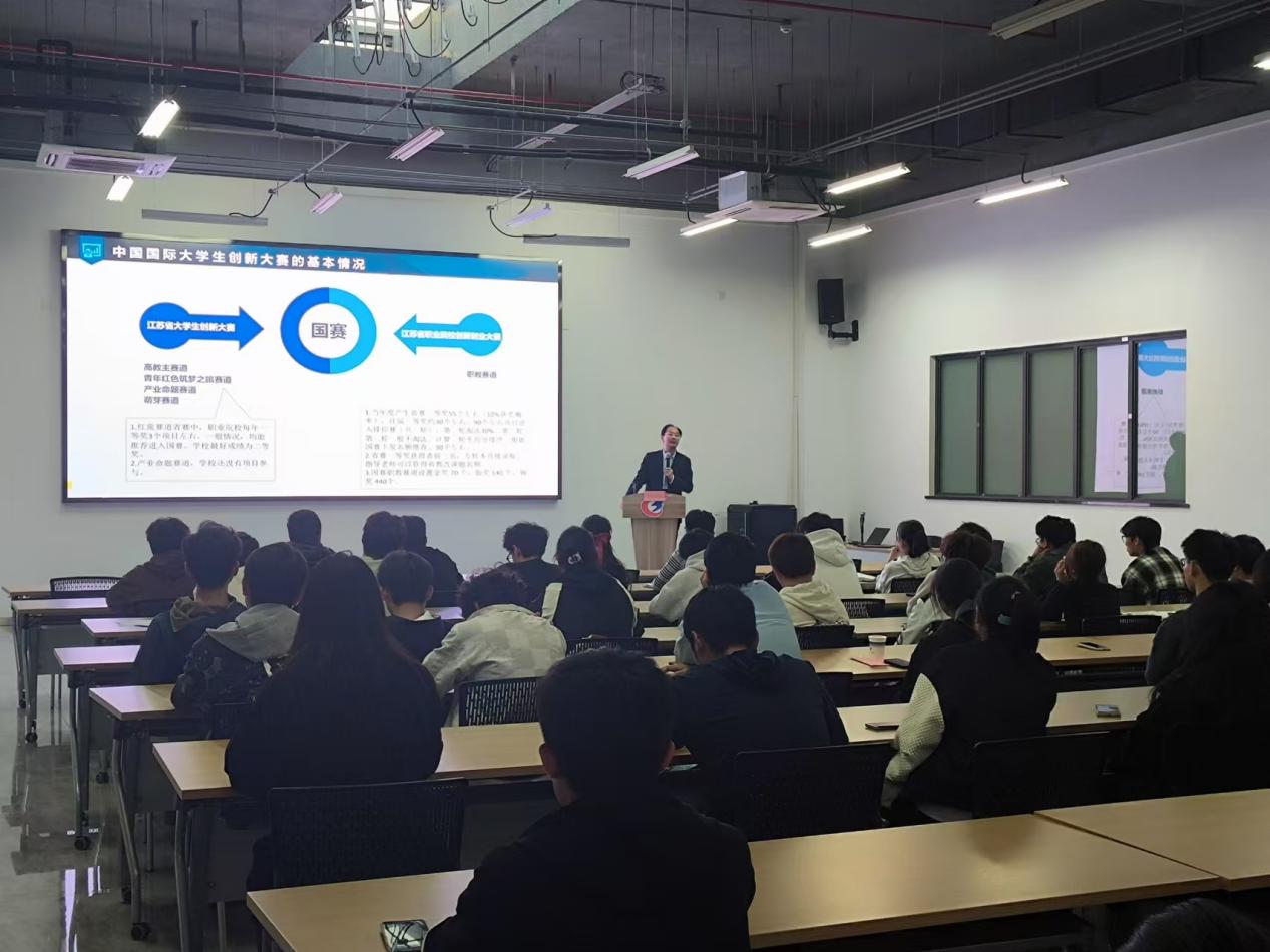 分享会伊始,仇志海用习近平总书记对中国国际老员工创新大赛参赛员工的回信,借由该赛事的成功举办和悠久历史,指出了高校师生发扬创新精神,参与创新创业竞赛的重要性,并由此引入了对创新创业赛事的具体讲解。他通过对中国国际老员工创新大赛赛事通知、赛道赛制、备赛周期的解读,详细为参会的全体师生介绍了适合304永利师生参赛的赛道,同时还为参会全体师生介绍了江苏省老员工创新大赛和江苏省职业院校老员工创新大赛两项赛事的赛道赛制、备赛周期等信息的解读。