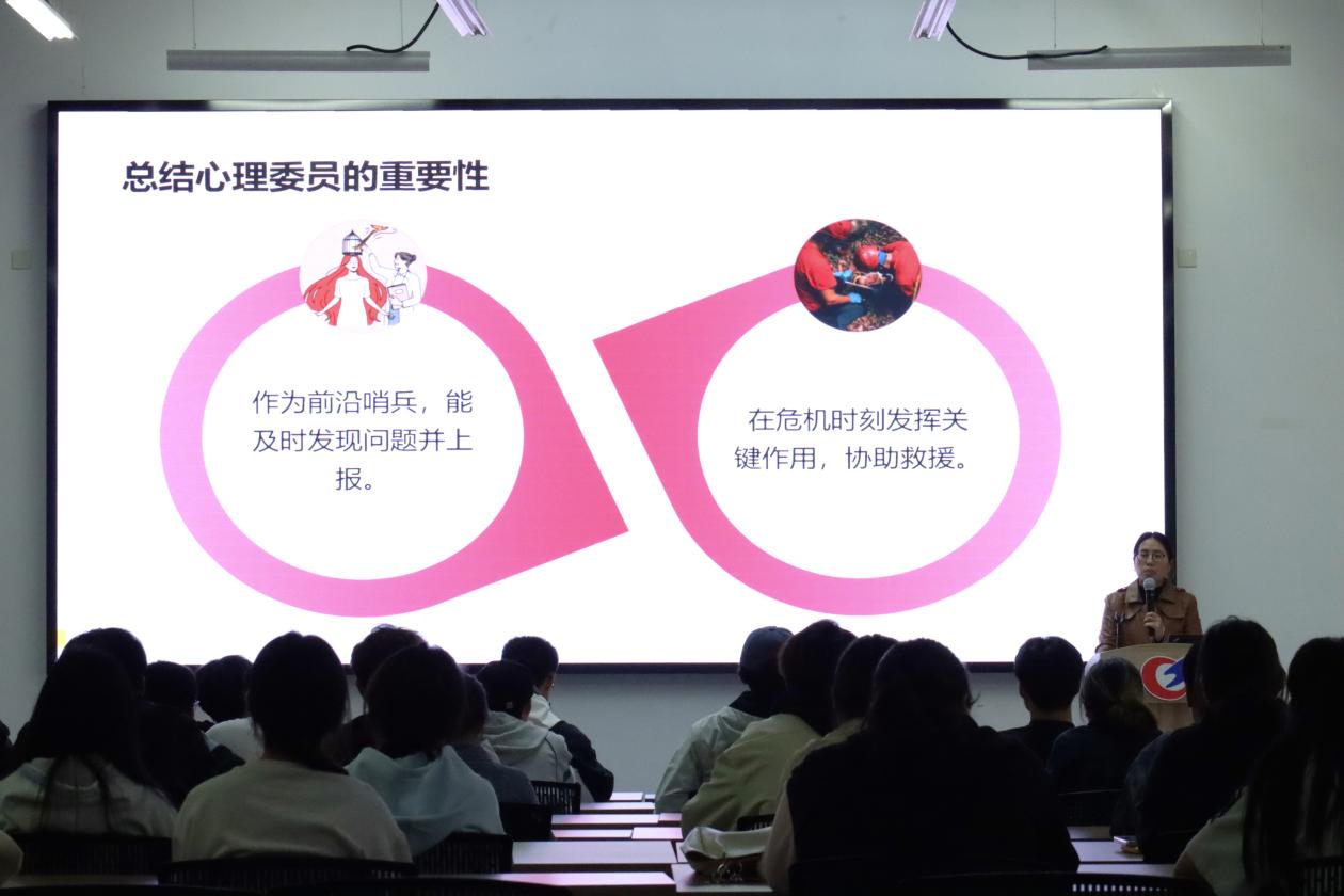 讲座中,周丽娟通过深入剖析三个极具代表性的案例,让同学们深刻认识到自己工作的重要性,这些案例涵盖了不同类型的心理危机情况,从员工情绪异常、行为变化到出现严重的心理问题等多方面呈现了心理健康问题的复杂性。她详细讲解了在每个案例里心理委员的及时察觉、准确判断以及恰当行动是如何在关键时刻发挥关键作用,或避免了更严重后果的发生,或成功启动了危机干预流程,切实守护了同学们的心理健康。随后,周丽娟紧密结合心理委员角色及工作、心理危机识别、危机干预的可能性、员工自杀的高危人群、常见工作困难及办法等方面,阐述了心理委员作为师生桥梁和危机前沿哨兵的职责,强调依据员工表现准确识别危机、及时恰当行动以启动干预流程守护同学心理健康的重要性,还提醒对老员工高危人群提高警惕并传授应对工作困难的办法,使心理委员们明晰自身所肩负的责任及在校园心理健康防线中的重要位置。