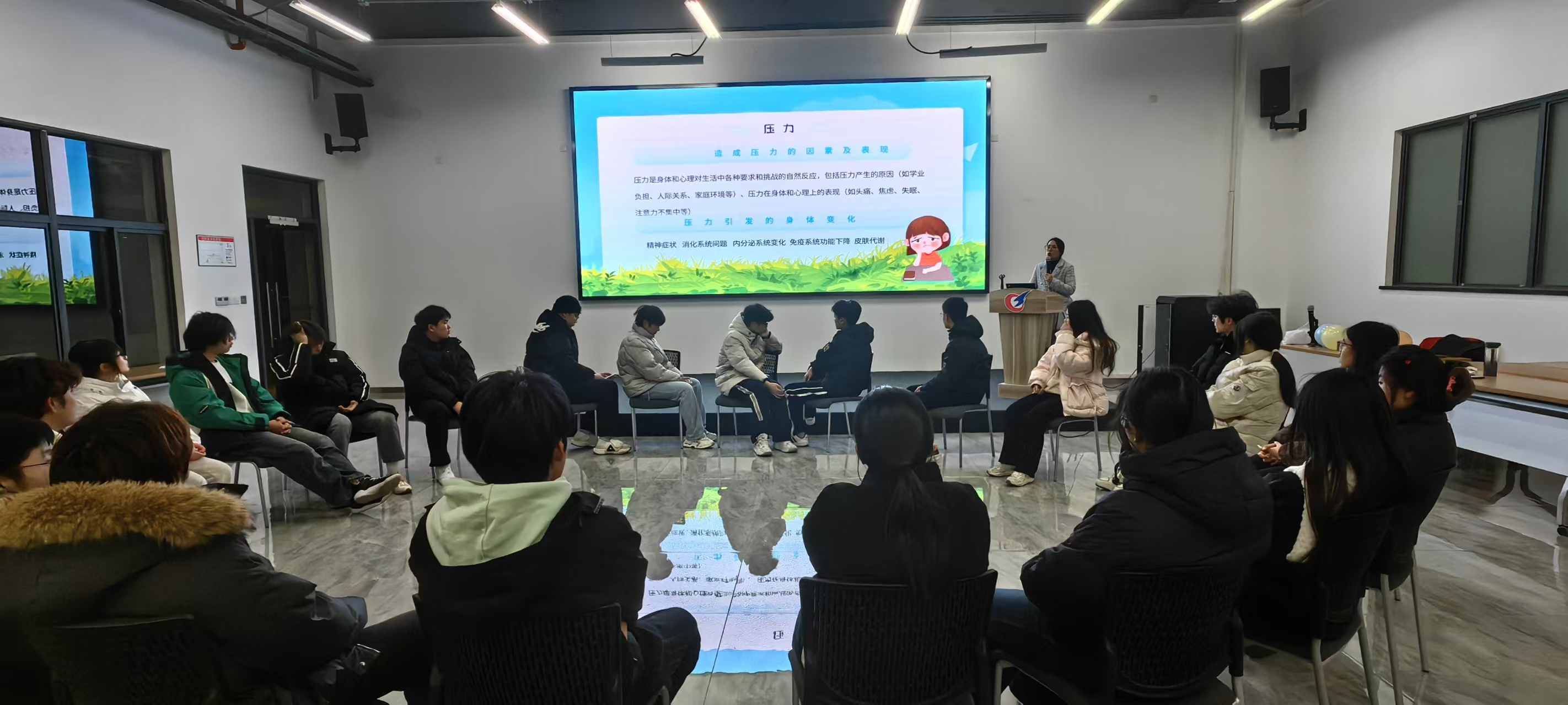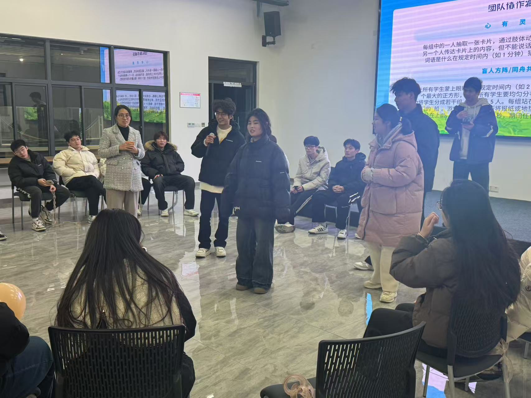 本次活动在舒缓的音乐与轻松惬意的氛围中拉开帷幕。开场伊始,指导老师周丽娟凭借PPT展示,结合生活实例,深入浅出地科普压力知识,剖析其来源、表现形式以及对身心的多重影响,引得同学们纷纷敞开心扉,踊跃分享自身经历。紧接着,一场深呼吸放松练习有序展开,有效驱散了同学们的紧张情绪。随后,一系列别出心裁的趣味游戏精彩上演,成为全场焦点。在“名字大接龙”与“压力气球传递”环节,前者如破冰利刃,瞬间拉近同学距离;后者则让大家在传递气球、分享压力、彼此安慰的过程中,情绪得到尽情释放。而“爱的魔力转圈圈”游戏更是扣人心弦,分三轮依音乐节奏层层推进,从自由转圈圈时的身心舒展、信任转圈圈时的彼此依靠,再到欢乐转圈圈时的彻底释放,同学们借绸带相连,互动间信任与友谊不断升温。此外,“心有灵犀”、“盲人方阵”、“同舟共济”等团队协作游戏接连登场,全方位考验团队协作能力,同学们于欢声笑语中深切领悟到信任、沟通与合作的磅礴力量,压力也随之消散。最后,“情感故事接龙”与“交换秘密”环节温情满满,为同学们搭建起深度情感交流的平台,大家在共创故事、互诉秘密中拉近心距,为压力寻得宣泄出口,现场氛围也在这深入的情感互动中愈发温馨宜人。
