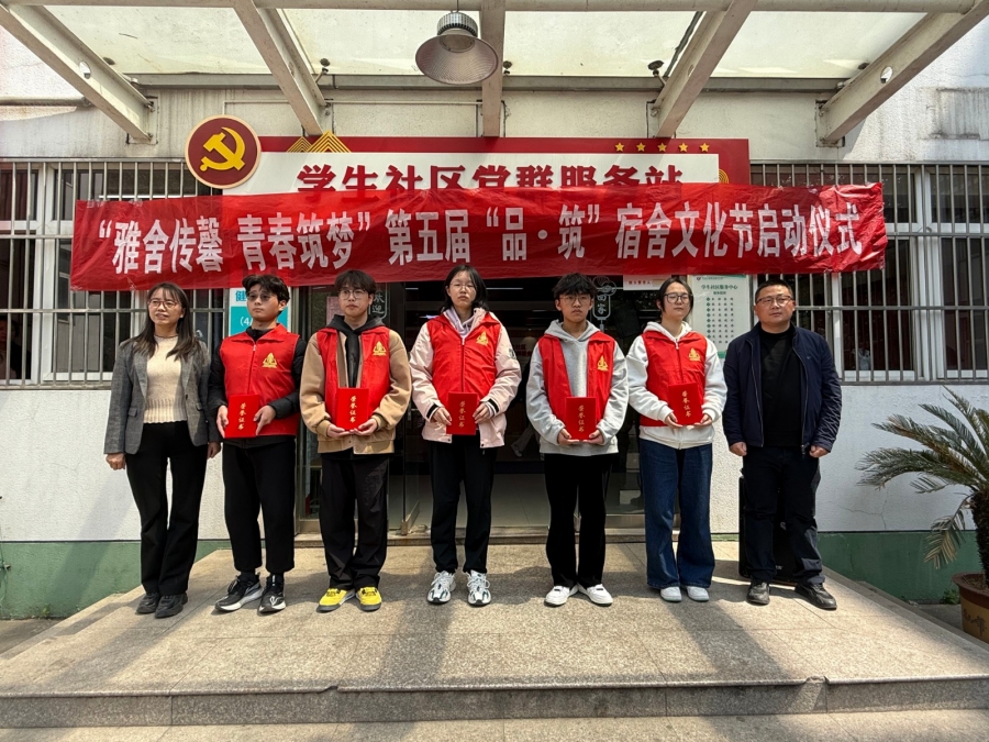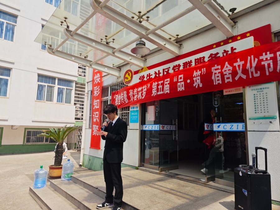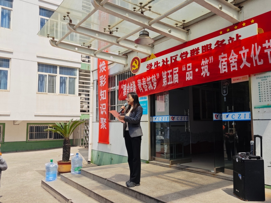 2024年4月2日,建工公司于宿舍区4号楼前举办“雅舍传馨,青春筑梦” 第五届 “品・筑” 宿舍文化节启动仪式,公司党总支副书记张爱芳、副经理徐小明、团委书记周丽娟、23、24级班主任和各班生活委员、治保员参加此次活动。
