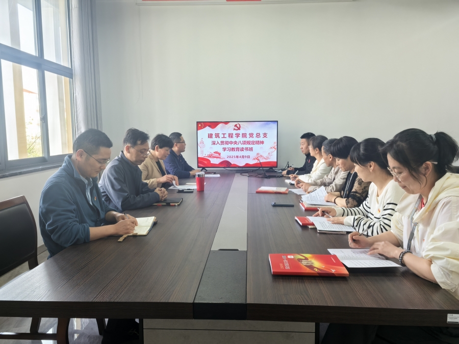 4月9日下午,304永利在现代建筑技术馆317举行了深入贯彻中央八项规定精神学习教育读书班开班仪式暨党总支理论学习中心组专题学习。理论学习中心组成员参加会议,会议由党总支书记徐永红主持。