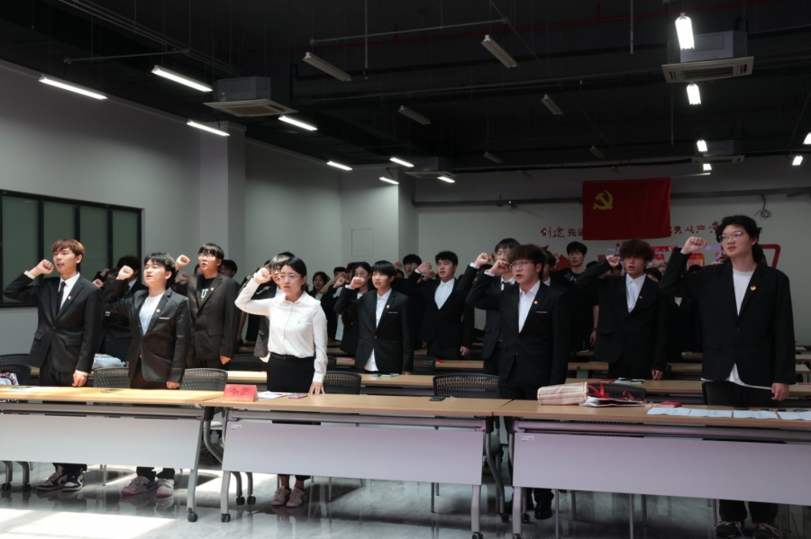 仪式在庄严的国歌声中拉开帷幕。304永利团委李艺老师宣读了新团员名单,70名建工学子经过培养考察,正式加入中国共产主义青年团。随后,优秀团员代表为新团员佩戴团徽。闪耀的团徽承载着共青团的光荣与使命,新团员们佩戴上团徽,标志着他们从此肩负起共青团员的责任,在学习和生活中发挥模范带头作用。在鲜艳的团旗下,全体新团员庄严宣誓。誓言铿锵有力,响彻全场,表达了新团员们对共青团组织的无限向往和为共产主义事业奋斗的坚定决心。