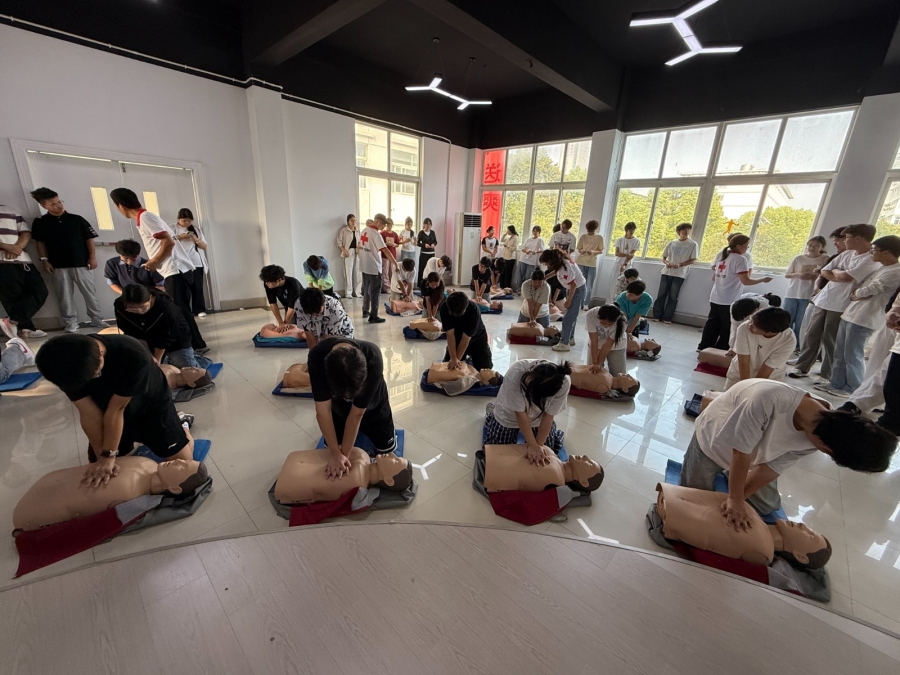 此次培训特邀常州市红十字会资深讲师团队授课,课程围绕“实用性、专业性、可操作性”三大核心展开。培训伊始,讲师结合校园常见安全场景,如运动损伤、意外磕碰、突发疾病等,通过案例讲解、视频演示等方式,详细解读了心肺复苏(CPR)、海姆立克急救法、创伤止血包扎等关键应急技能的原理与操作要点。“按压深度要达到5-6厘米,频率保持在每分钟100-120次”,讲师的细致讲解让抽象的理论知识变得直观易懂,员工骨干们认真听讲,积极互动,现场学习氛围浓厚。